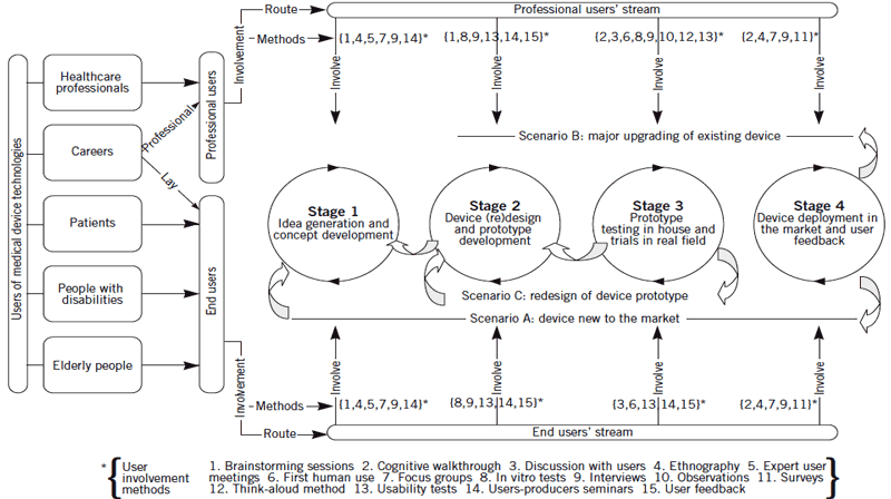 A manufacturer must reflect in his technical file that these points have been addressed and must continuously update his technical file on this point through PMS and gather information for this purpose. For manufacturers that want to involve users more actively in all stages of a device’s life cycle but would like a structured model for this, the model developed by researchers of Brunel University that I came across may be very interesting. It looks like this:
